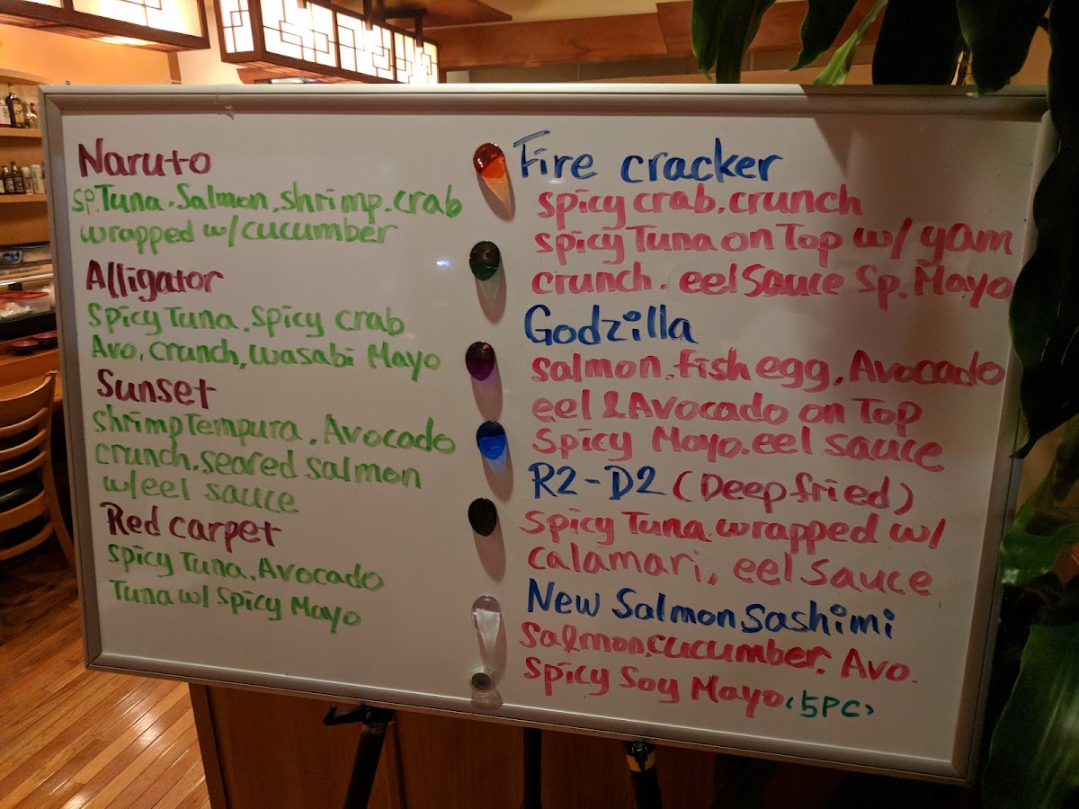 Inside- Spicy tuna, cucumber, Outside- Tuna, avocado, jalapeno w/ spicy mayo