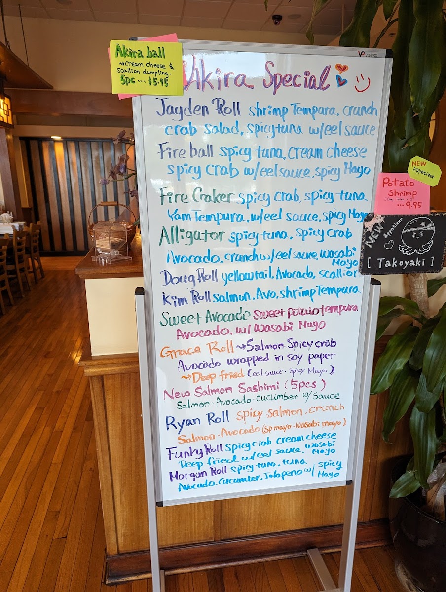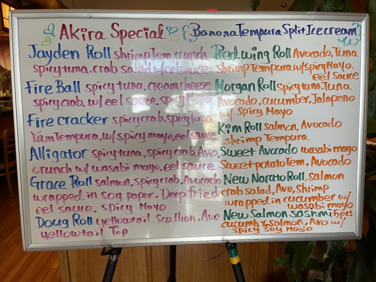 Inside- Crab tempura, shrimp tempura, avocado, cream cheese, Outside- soy paper w/ mayo and eel sauce