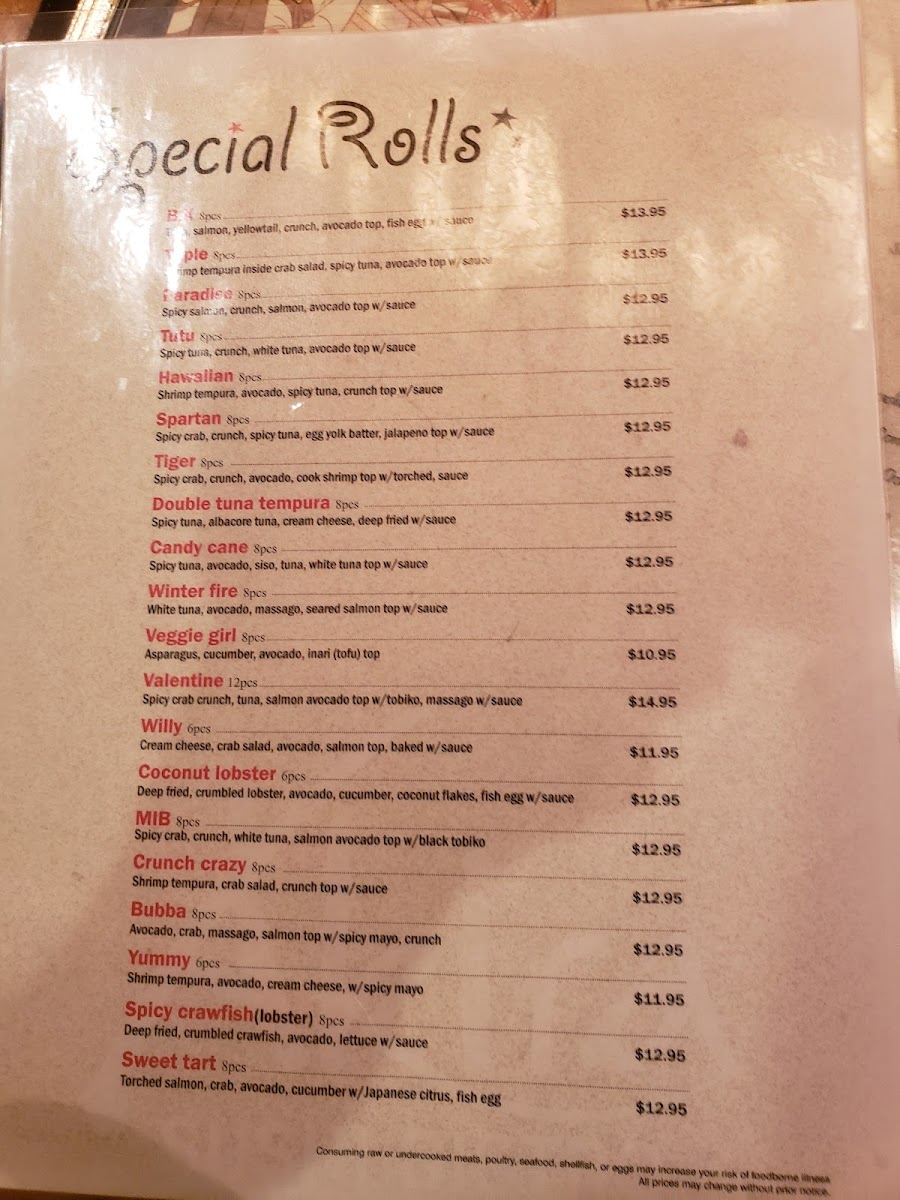 Spicy california roll Spicy tuna roll Spicy salmon roll