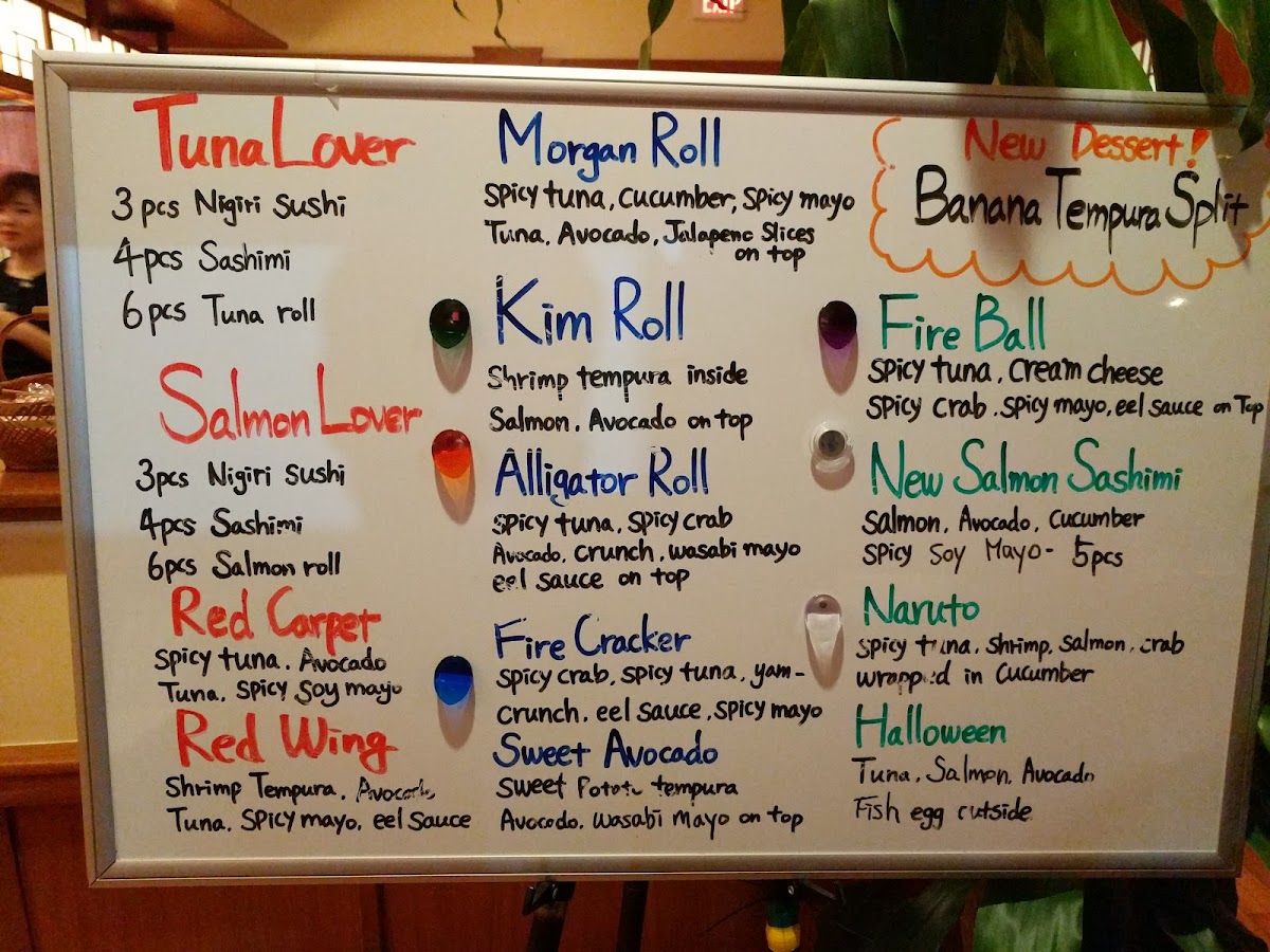 Inside- spicy crab, spicy tuna, Outside- yam tempura w/ eel sauce & spicy mayo